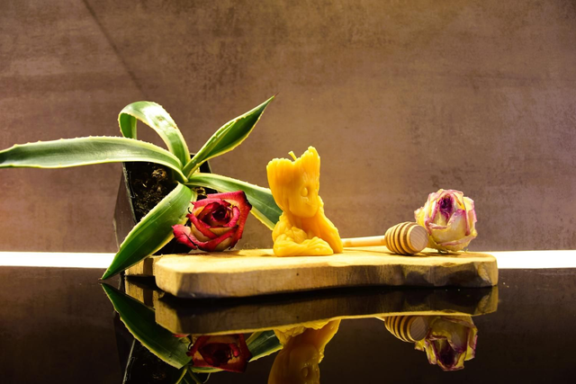 Nos bougies sont naturellement colorées et parfumées par le pollen que les abeilles déposent sur la cire à l'intérieur de la ruche. Nos bougies diffuseront dans vos pièces une agréable odeur de miel grâce au nectar des fleurs que les ouvrières ont butiné. Chaque saison la couleur et l'arôme de nos bougies varient très légèrement, cela fait partie du charme des produits issus du vivant.